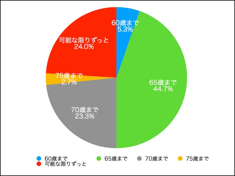 結果は「65歳まで」が44%でしたが、「70歳まで」「75歳まで」「可能な限りずっと」の3つを選んだ女性も約半数となりました。