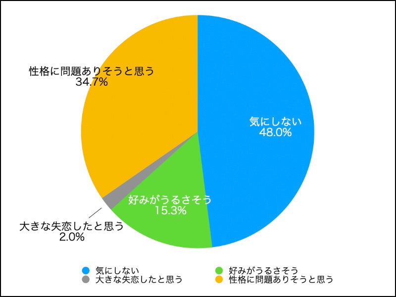 また「好みがうるさそう」と回答した人も15%いて、どちらかと言えばマイナスの印象を持つ30代女性が約半数いたということになります。