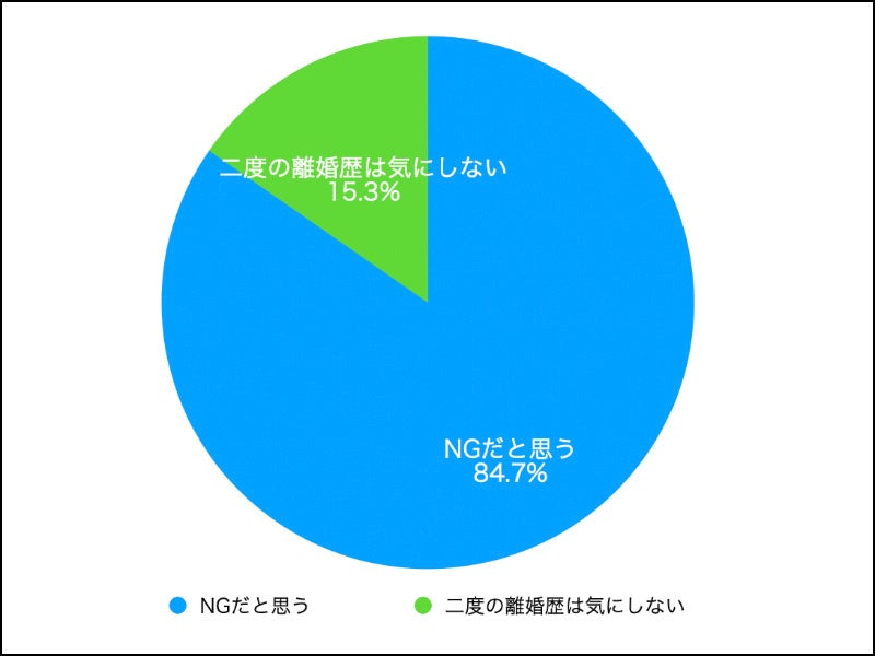 二度の離婚歴は相当印象が悪いようで「84%」の女性がNGと回答しました。