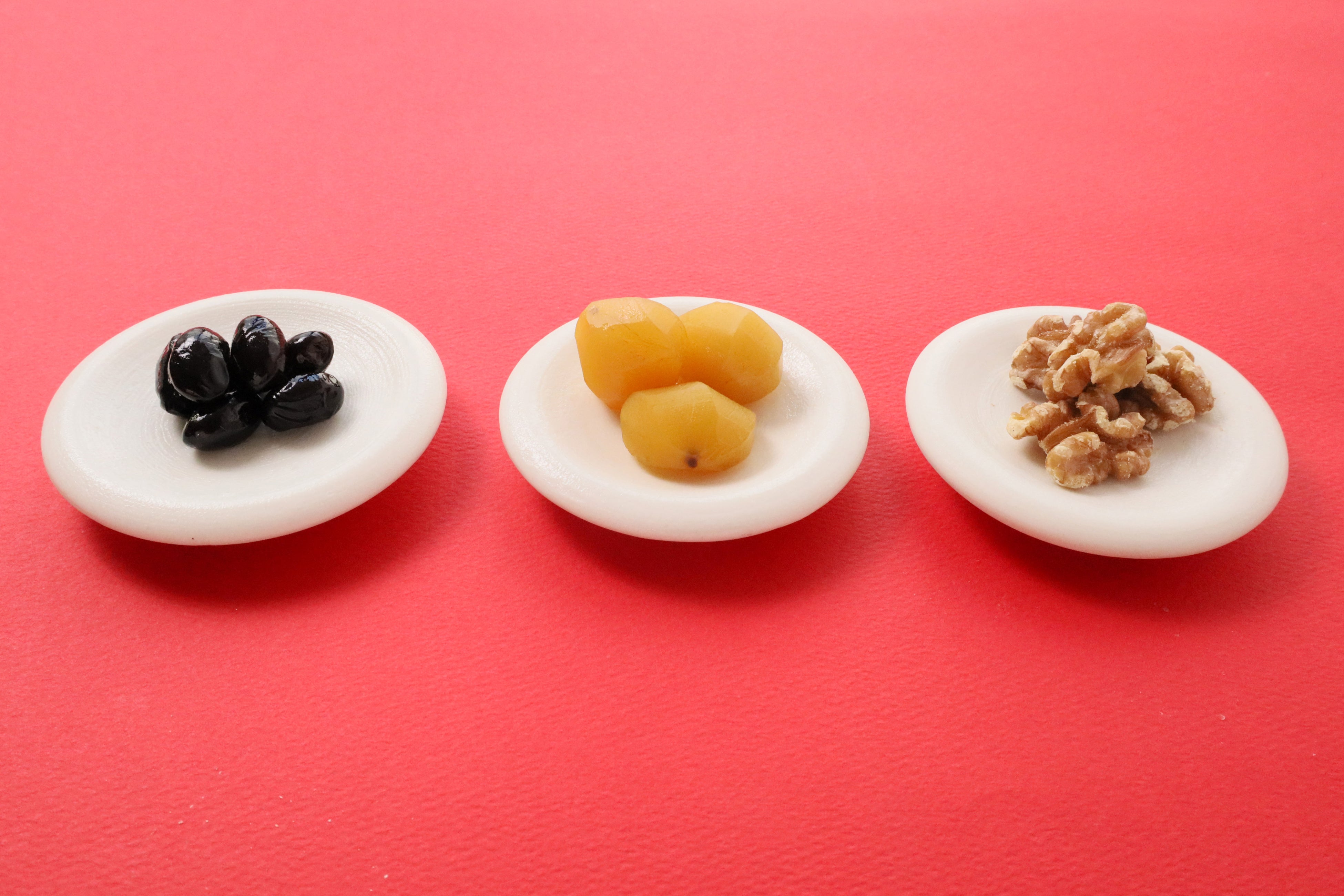 黒豆は「まめに暮らせますように」、栗は「商売繁盛」、くるみは「家庭円満」という縁起のよい意味を込めてお作りしました。