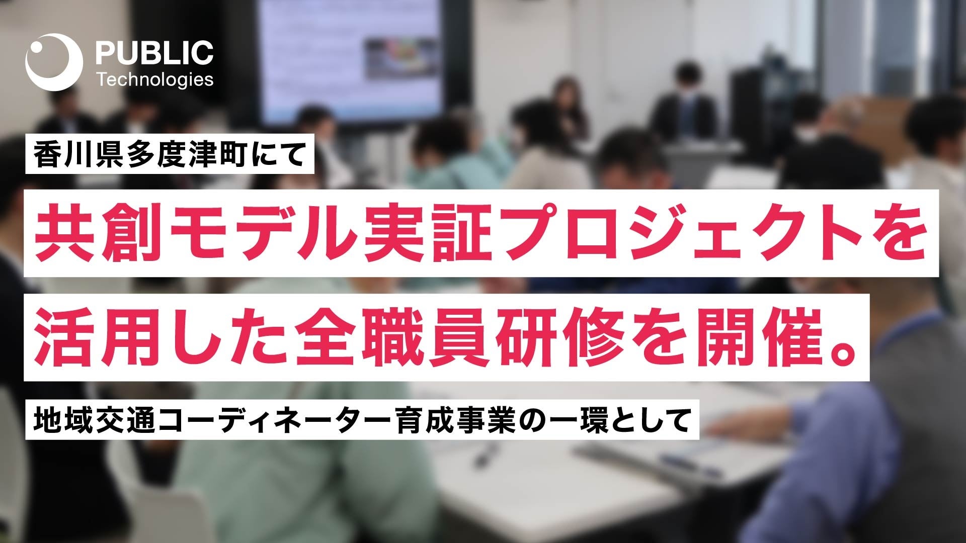 テクノロジーの力を信じ、地域の未来を創る株式会社パブリックテクノロジーズ(本社:東京都渋谷区、代表取締役CEO:青木 大和)は、国土交通省が行う「共創モデル実証プロジェクト https://www.mlit.go.jp/sogoseisaku/transport/kyousou/ 」の人材育成事業の一環として、一般社団法人構想日本(本社:東京都千代田区、代表:加藤秀樹)と香川県多度津町にて「地域交通コーディネーター育成事業」を立ち上げ、2024年2月14日(水)に全職員研修とワークショップを行いました。「地域交通コーディネーター育成事業」では、町民を巻き込みながら地域公共交通の改善・運営を行うことができる人材を育成することを目指しています。