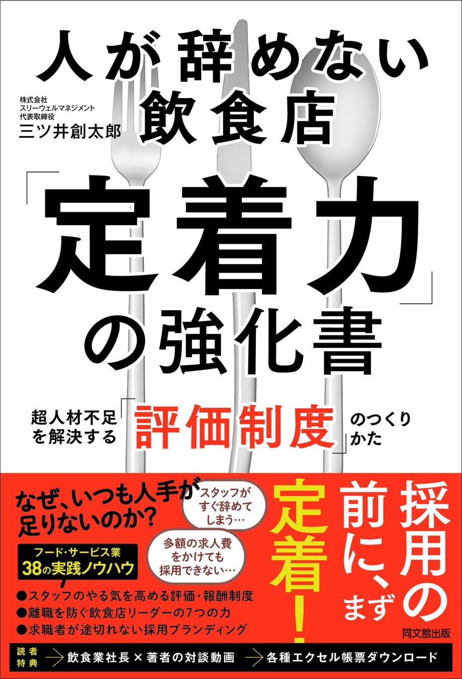 飲食店へのコンサルティング等を行う株式会社スリーウェルマネジメント(本社:東京都中央区)の代表である、三ツ井創太郎による3冊目の著書「人が辞めない飲食店”定着力”の強化書」(同文舘出版)が2024年3月1日に発売されました。本書は飲食店の人材定着力向上や人事評価制度等について、具体的な構築&運用ノウハウと成功事例を解説した日本で初めてとなる専門書となります。
