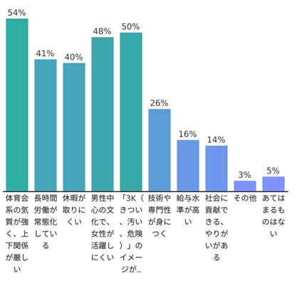 ・「3K(きつい・汚い・危険)」のイメージがある:49.7%