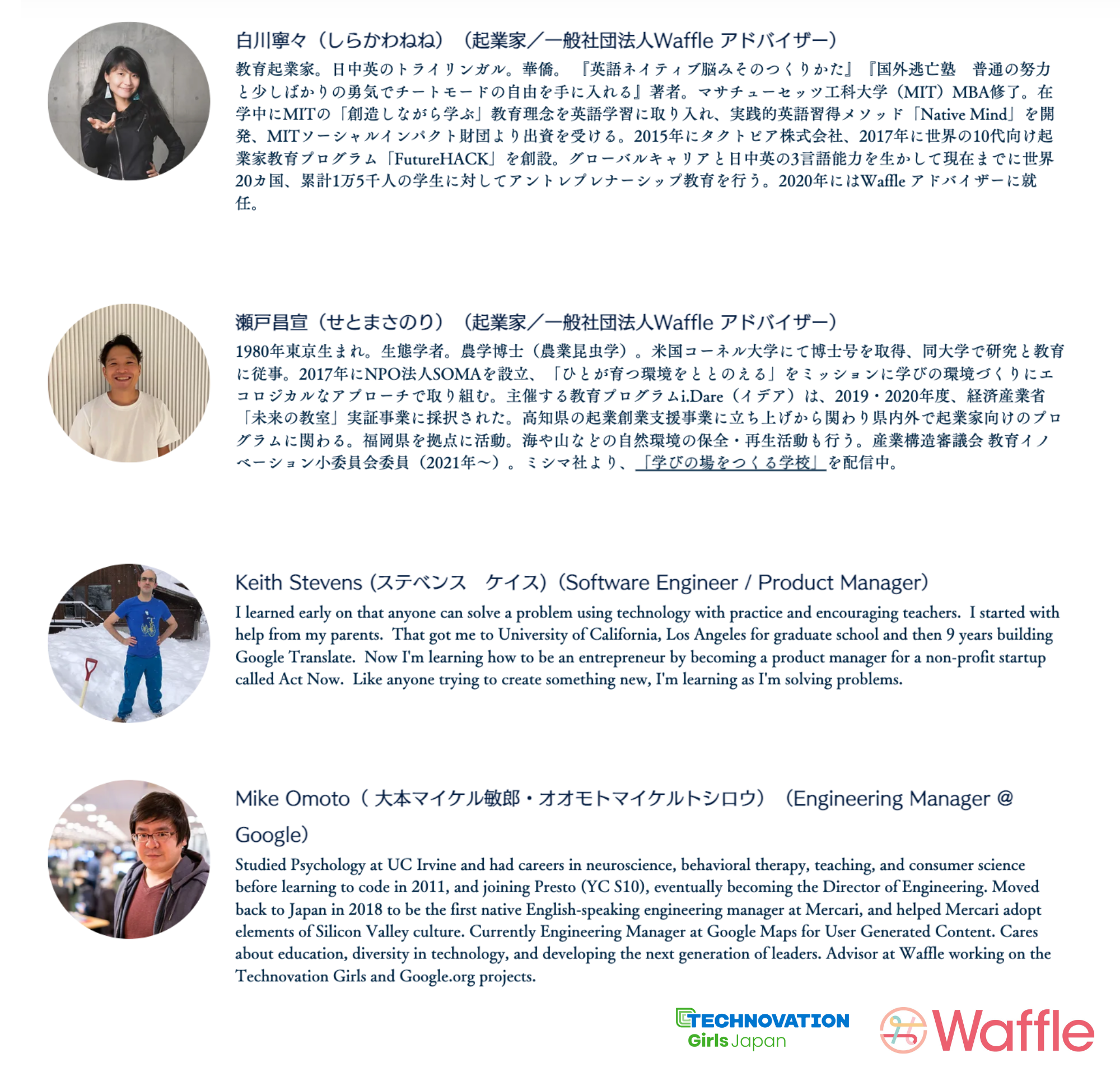 - 「Technovation Girls 2023 日本リージョン」運営メンバーのご紹介