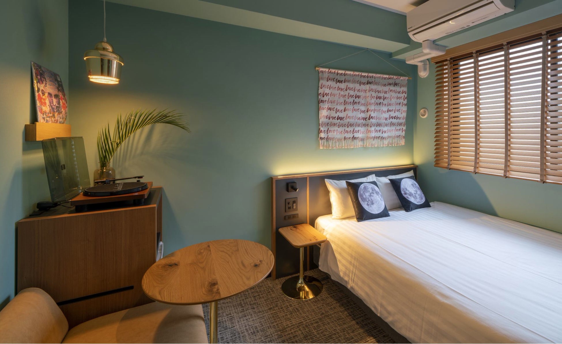 ご宿泊いただく客室には全室レコードプレイヤー完備の他、物語の世界観に沿った特別な演出もご用意しています。いつものHOTEL SHE, KYOTOとは一味違った仕掛けにより、物語の舞台となるモーテルにそのまま宿泊するような体験をチェックインからチェックアウトまでお楽しみいただけます。