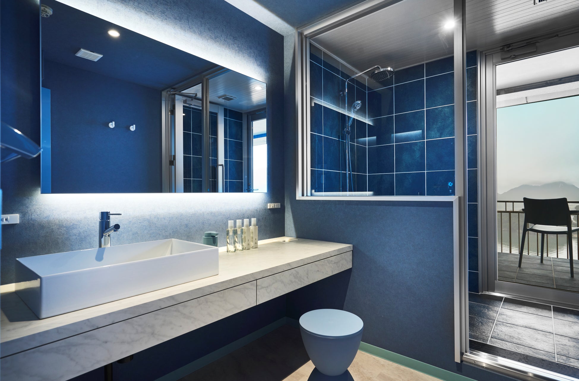 リラックス効果のあると言われている青色。まるで母なる海に包まれているかのような客室で、心身を解きほぐす寛ぎの時間をお過ごしいただけます。