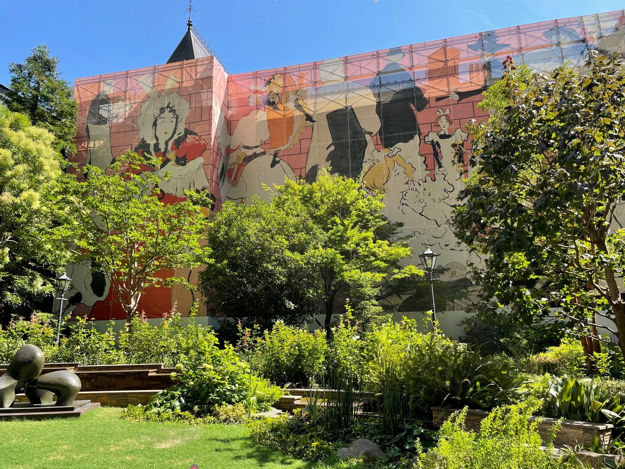 三菱一号館美術館は、設備入替および建物メンテナンスのため2024年秋まで休館中ですが、同館が所蔵するトゥールーズ=ロートレックの28作品をダイナミックにコラージュした仮囲い装飾を設置中です。この装飾は美術館のロゴマークを制作した服部一成氏によるデザインです。※2024年まで設置予定