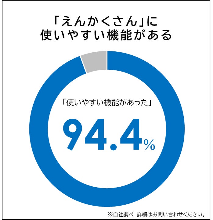 「えんかくさん」を使ってみて、「使いやすい機能・便利な機能があった」と94.4%が回答しました。