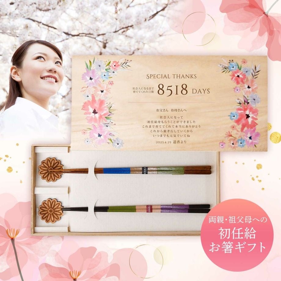 ▼子育て感謝状付き夫婦箸&箸置きセット「春日」