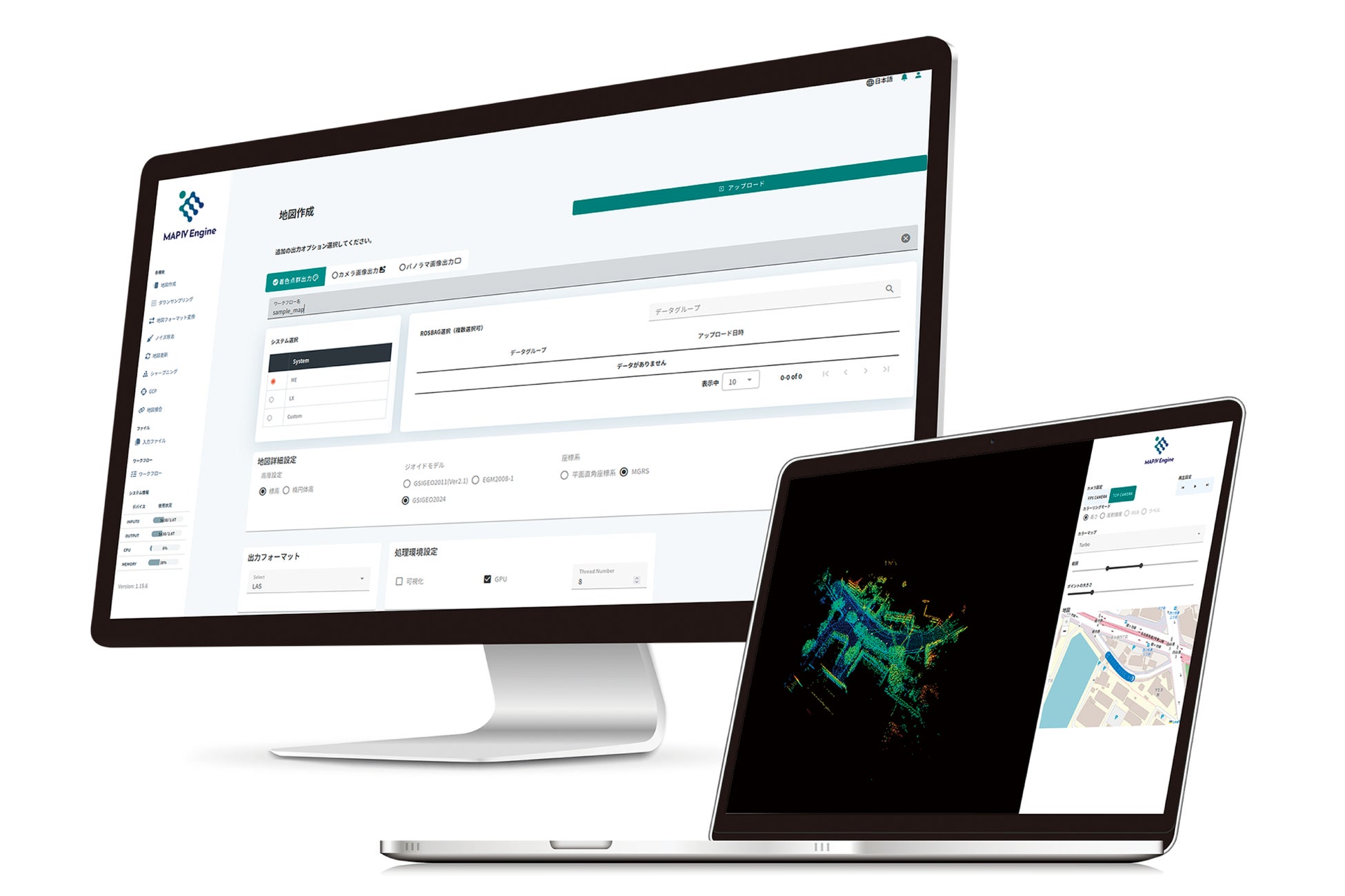 SEAMSで取得したデータを、3次元点群作成ソフトウェア「MAP IV Engine」で処理することで、計測時間の約半分の時間で、MMSを使用した場合と同等の高精度な点群データを作成できます。