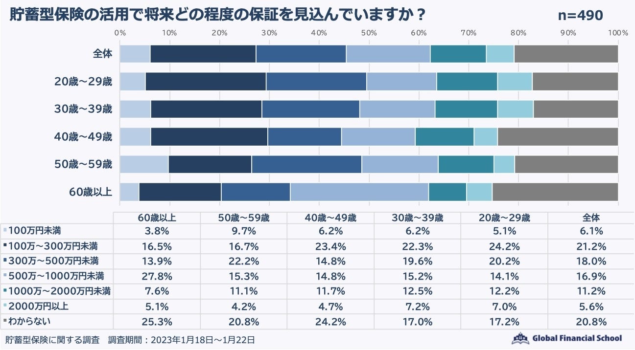いっぽうで約2割の人が、貯蓄型保険で見込む保証金額が「わからない」と回答していました。