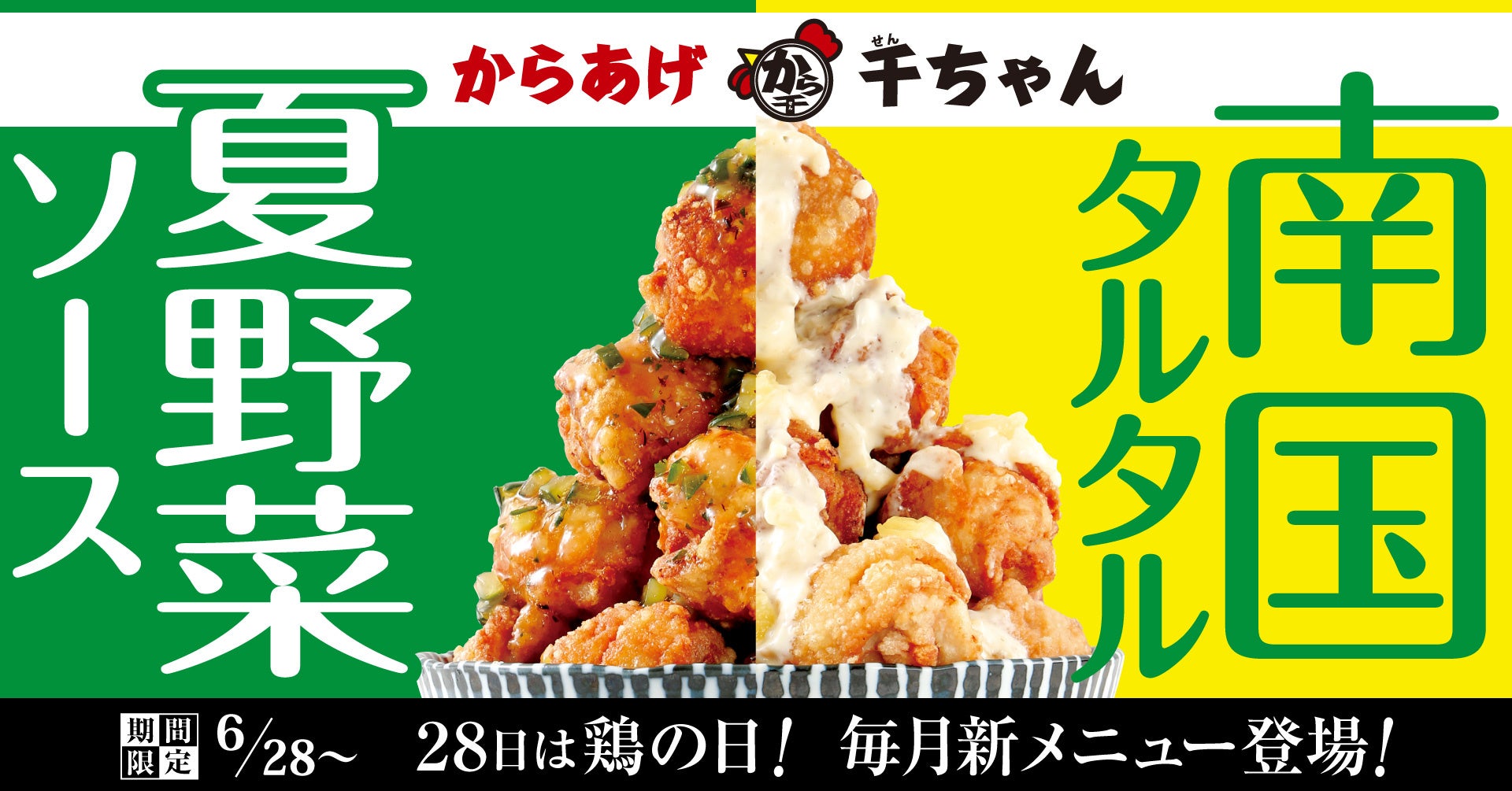 6月28日(火)より期間限定にて、「夏野菜ソース」と「南国タルタル」の旨塩からあげを2種類販売。