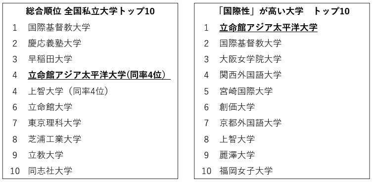 「国際性」で2年連続全国1位 全国私大でワンランクアップの4位 6年連続 西日本私大1位にランクイン