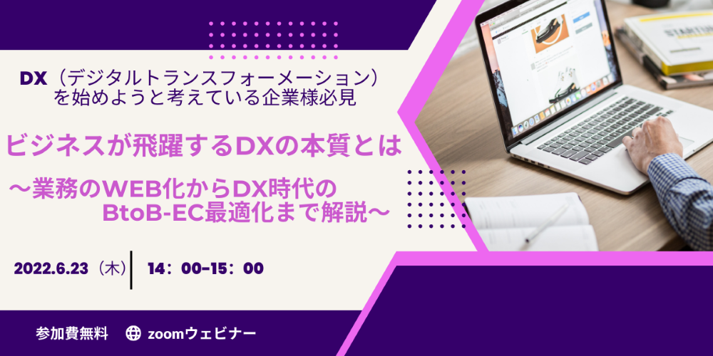 【6/23 開催】3社共催:DX(デジタル・トランスフォーメーション)を始めようと考えている企業様必見!ビジネスが飛躍するDXの本質とは~業務のWEB化からDX時代のBtoB-EC最適化まで~