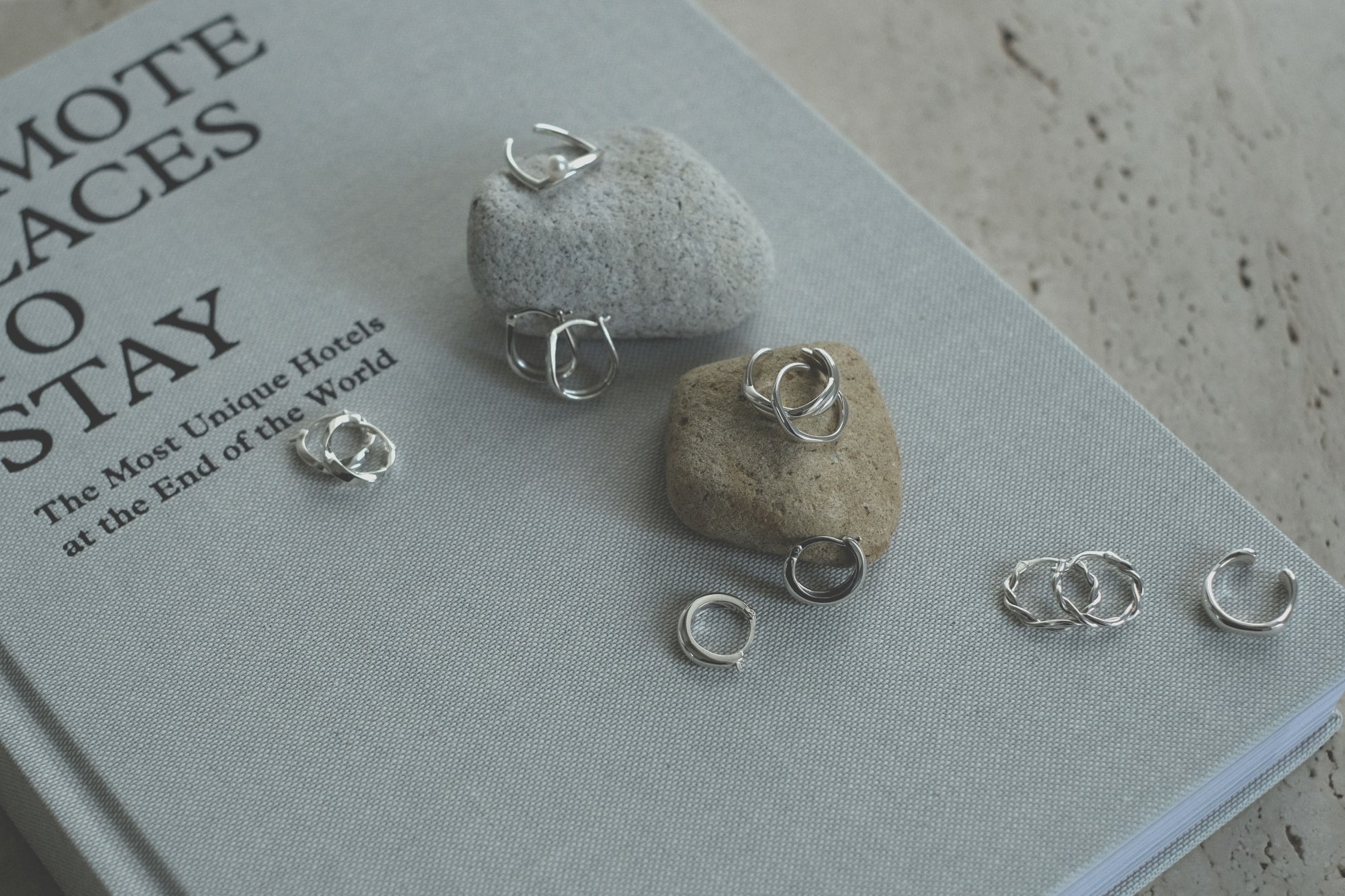 柔らかな光と強い光があわさり光沢となる。光をとらえて美しく輝くシルバージュエリー。 移ろいゆく日々と共に変化していく輝きは普遍的に美しい。フレッシュなムードが漂うタイムレスジュエリー。