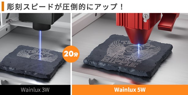 自宅での少量生産も簡単に実現できます。また従来の3Wモデルと比べ、仕上がり時間が約40%短縮されており、同一設定・同一素材での彫刻効率が大幅に向上しました。
