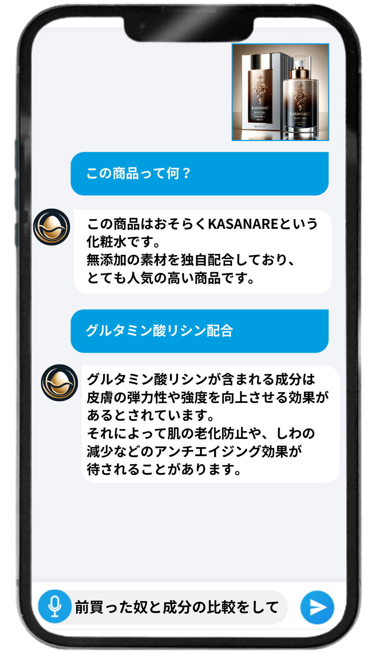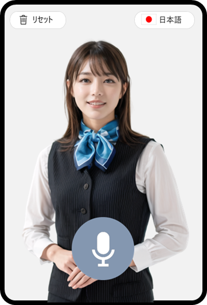 大規模言語モデル(LLM)と独自のプロンプト生成アルゴリズムを使用することで、難解な日本語の解釈だけでなく、コンテクスト(文脈)を理解するため、例えば「こそあど」表現にも正確に回答できます。多言語対応も可能なため、インバウンド需要が高まっている昨今の現場ニーズも高く、言語の障壁を越えて、人と人の自然な会話を再現することができます。