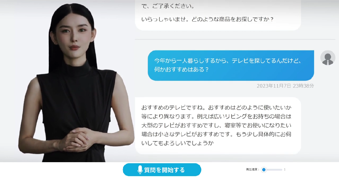 接客やカスタマーサポートの人員不足を解消する、新しい対話システムの提供を開始~ 回答精度の高い対話型生成AIやチャットボットがお買い物のアドバイスやQ&Aに答える! ~