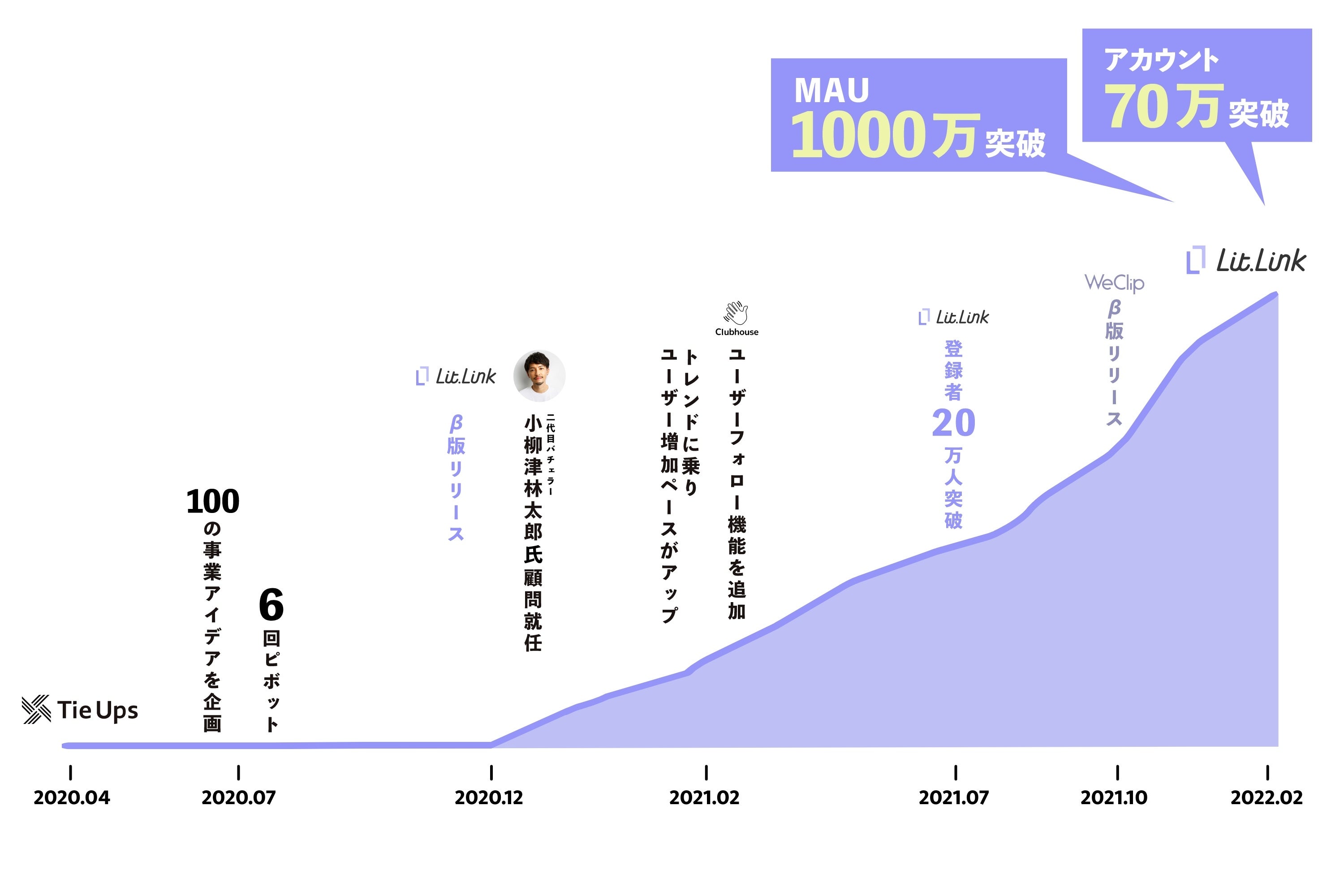 プロフィールサイト「lit.link」、コミュニティSNS「WeClip」の開発・運営をするTieUps株式会社(所在地:東京都渋谷区、代表取締役:小原史啓)は3月7日(月)、Headline Asia、ANOBAKA、吉川徹氏(株式会社マイベスト 代表取締役)からJ-KISS型新株予約権の発行による資金調達を実施しました。デットファイナンスを合わせ、シードラウンドでの資金調達は総額1億円となります。調達した資金はプロフィールサイト「lit.link」、コミュニティSNS「WeClip」の機能拡充への投資、採用と社内体制の強化を予定しています。