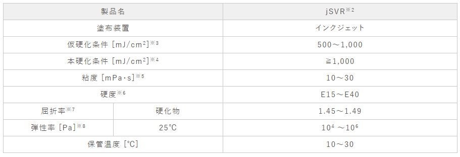 ■製品名:光学弾性樹脂“Jettable SVR(jSVR)”