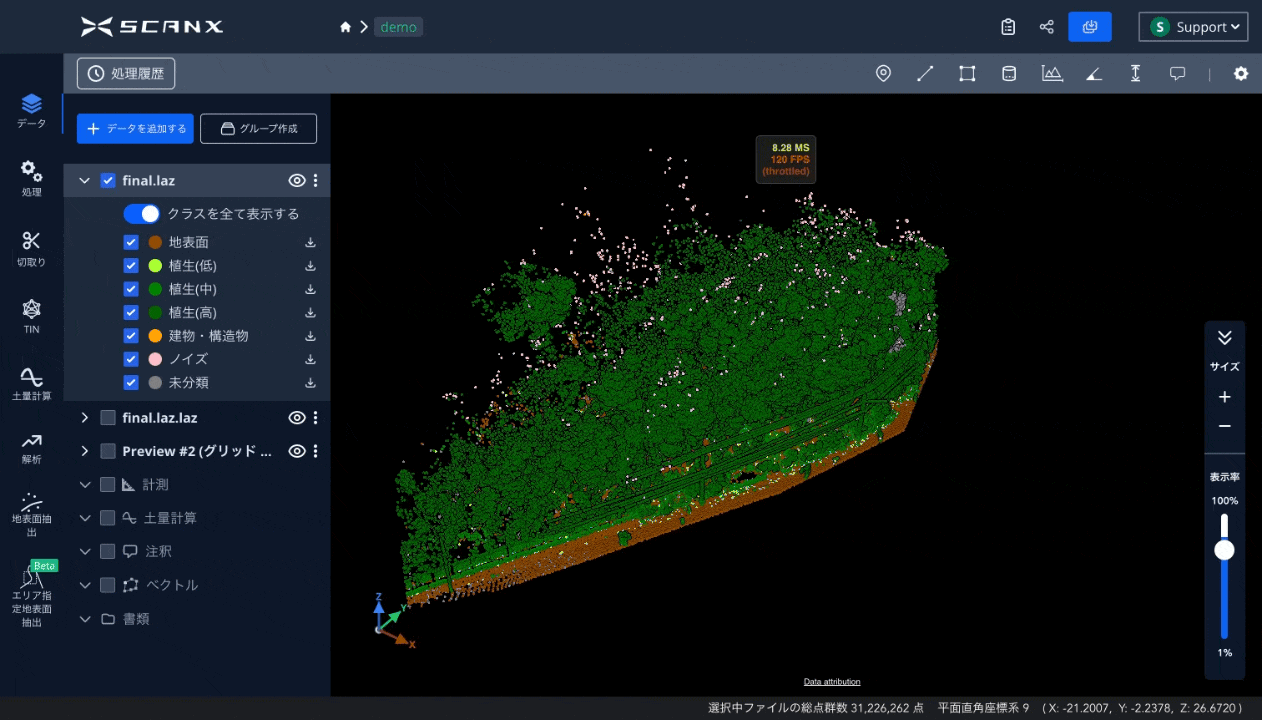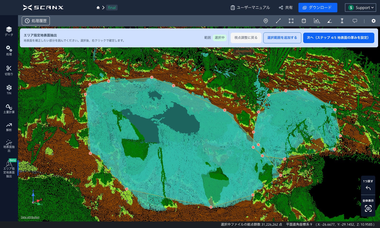 ScanX、地表面点群データ抽出の手戻りを削減「エリア指定地表面抽出機能」を公開