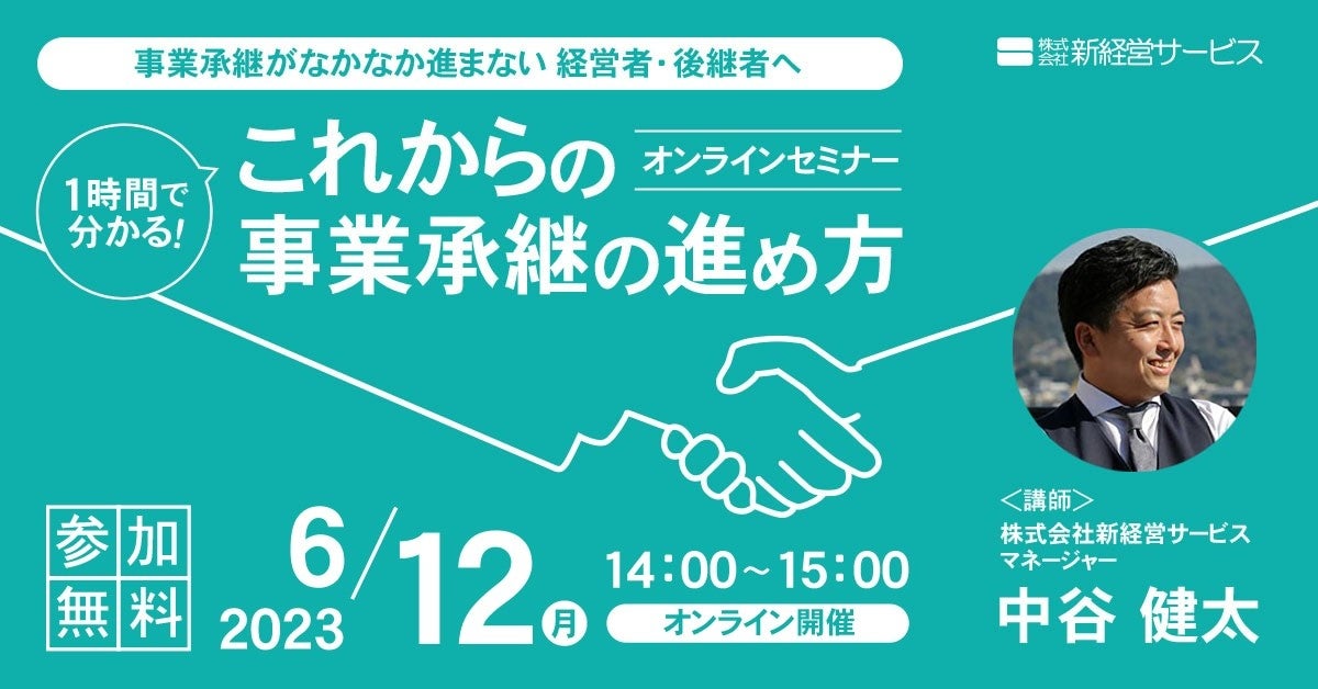 【6/12(月)開催 無料オンラインセミナー】【1時間で分かる!】 これからの事業承継の進め方(令和5年版)をテーマにセミナーを開催