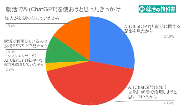 ChatGPTを知り、自然に就活で活用しようと思いついたから:43.4%