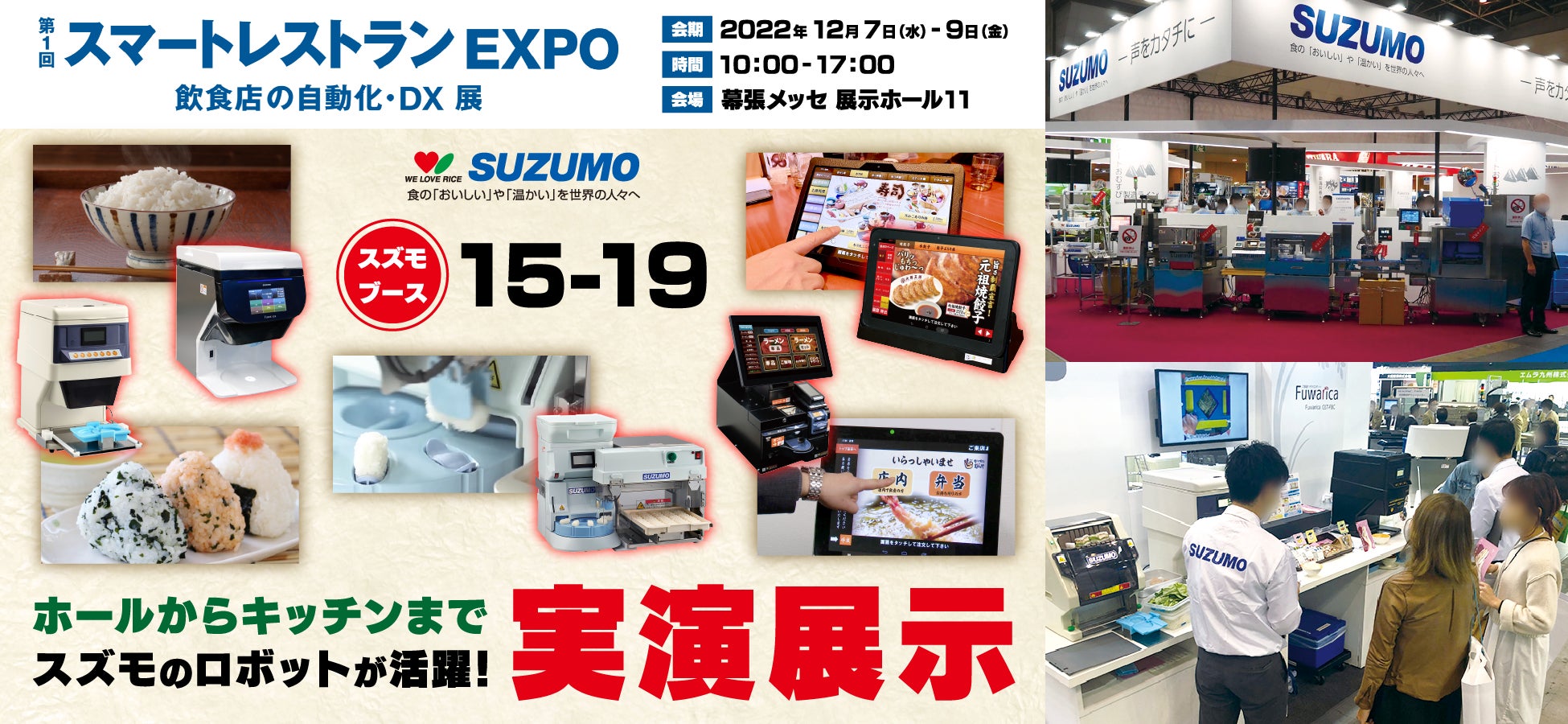 鈴茂器工株式会社(本社:東京都中野区、代表取締役社長:鈴木美奈子、以下 鈴茂器工)は2022年12月7日(水)から9日(金)に開催される展示会 『フードテックWeek東京2022 第1回 スマートレストランEXPO(幕張メッセ)』に出展いたします。