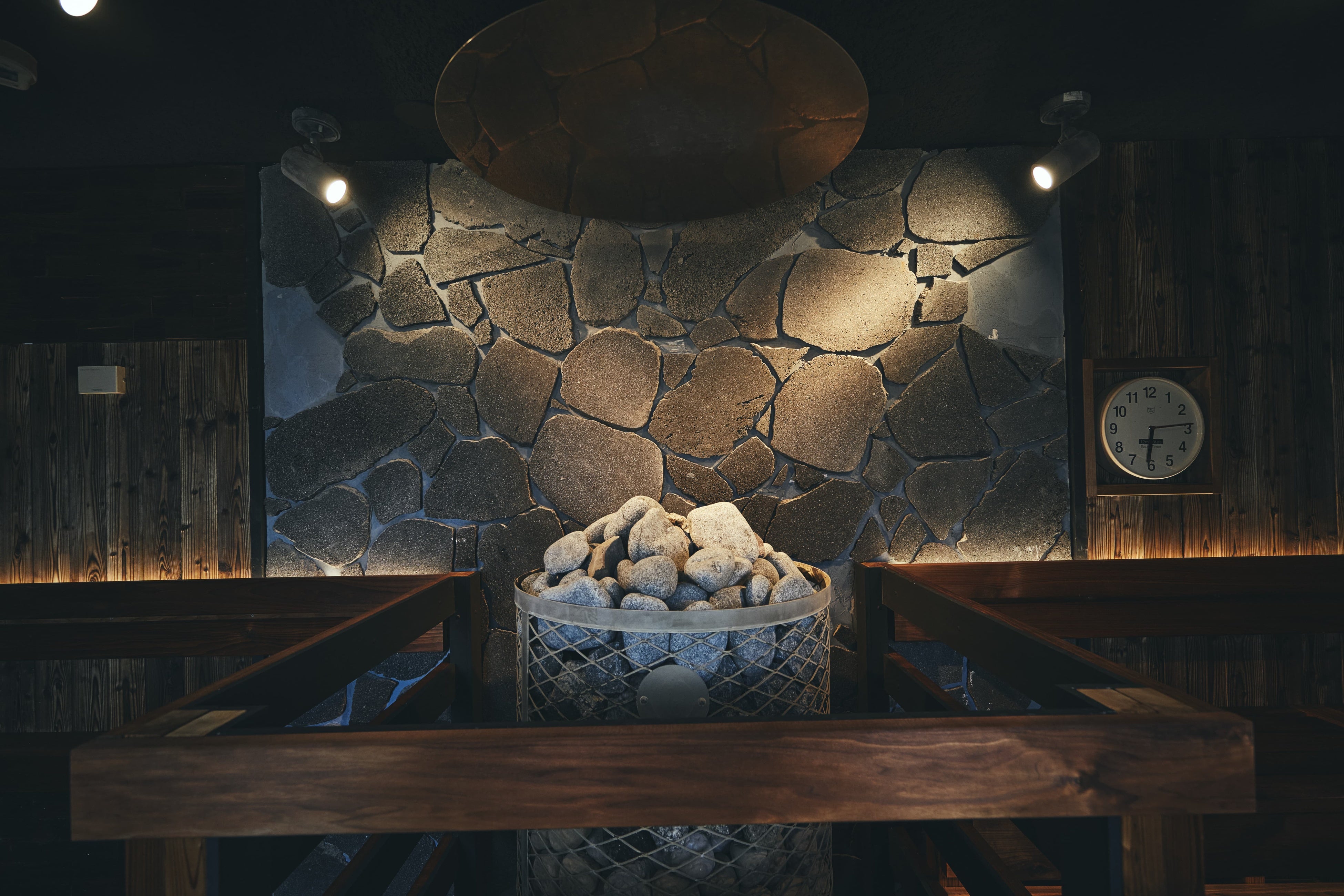 サウナストーブには日本初の導入となる北欧・エストニアのSaunum(サウナム)を採用。約100kgのサウナストーンを擁する強力な馬力は勿論のこと、ストーブ背面にある空気循環装置によって、ロウリュをした際に上からではなく、身体全体が蒸気に包まれる新感覚サウナ体験をお楽しみいただけます。