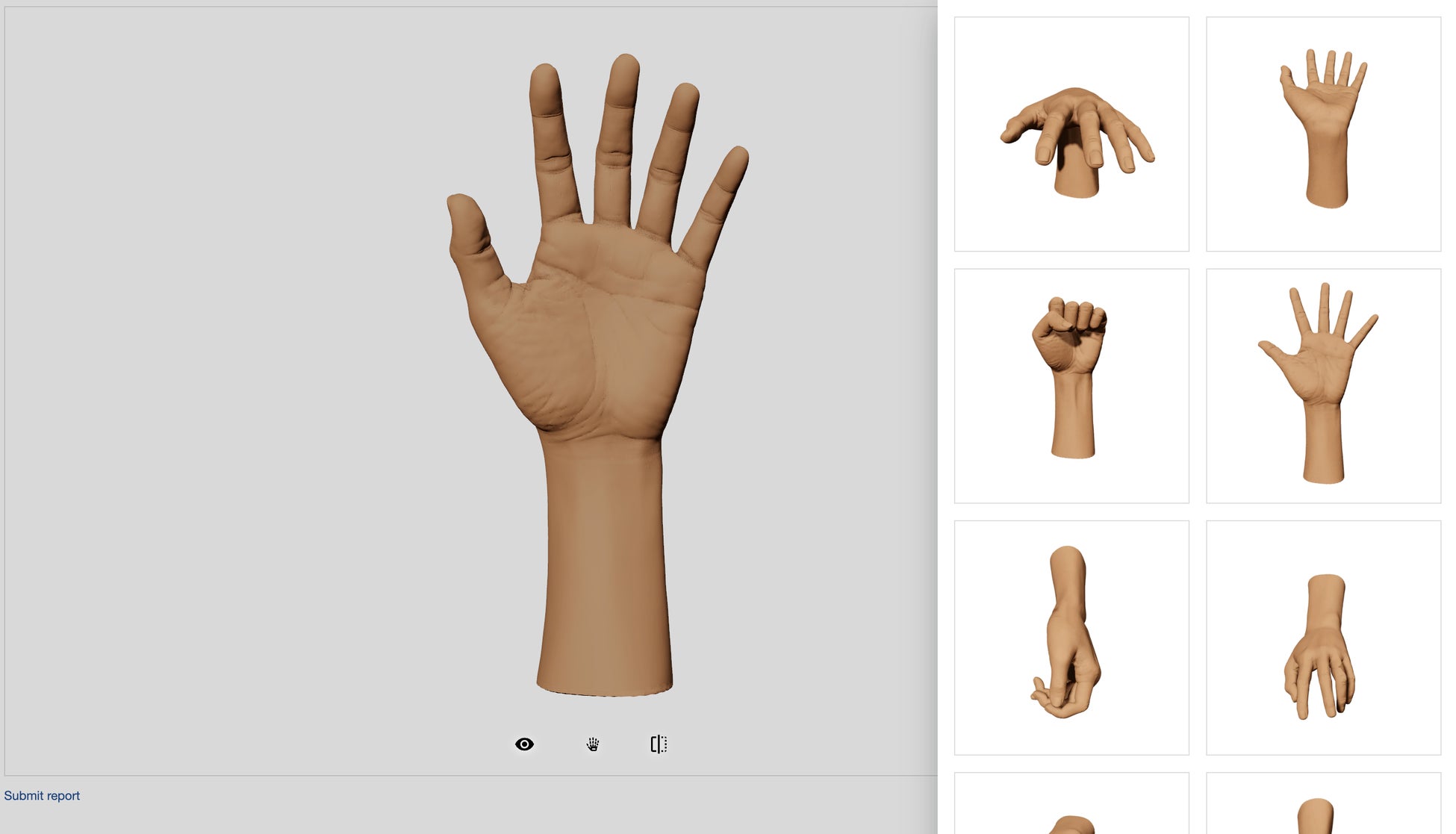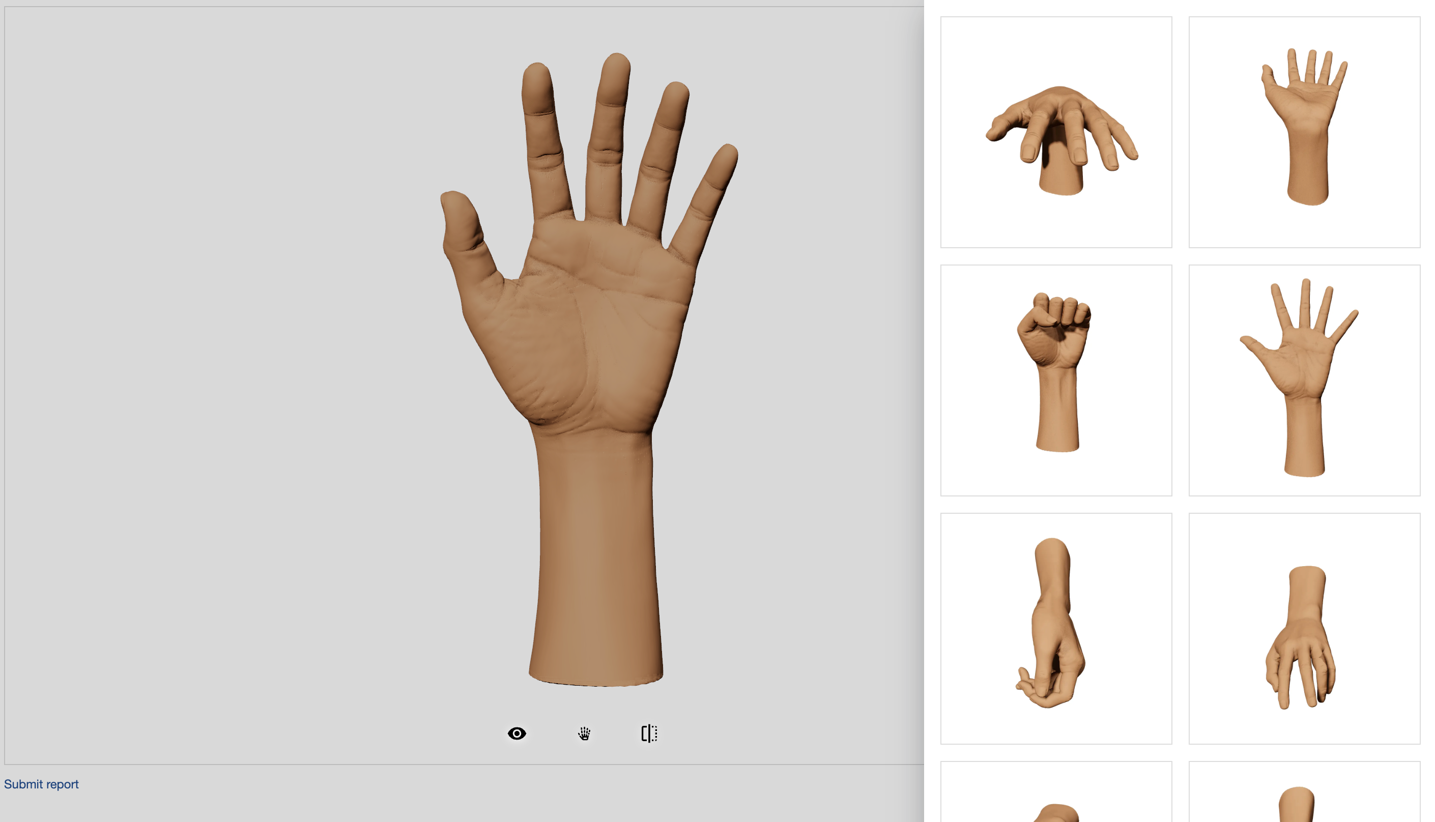 ユーザーがWeb上で好きな角度から手の素材を閲覧できる