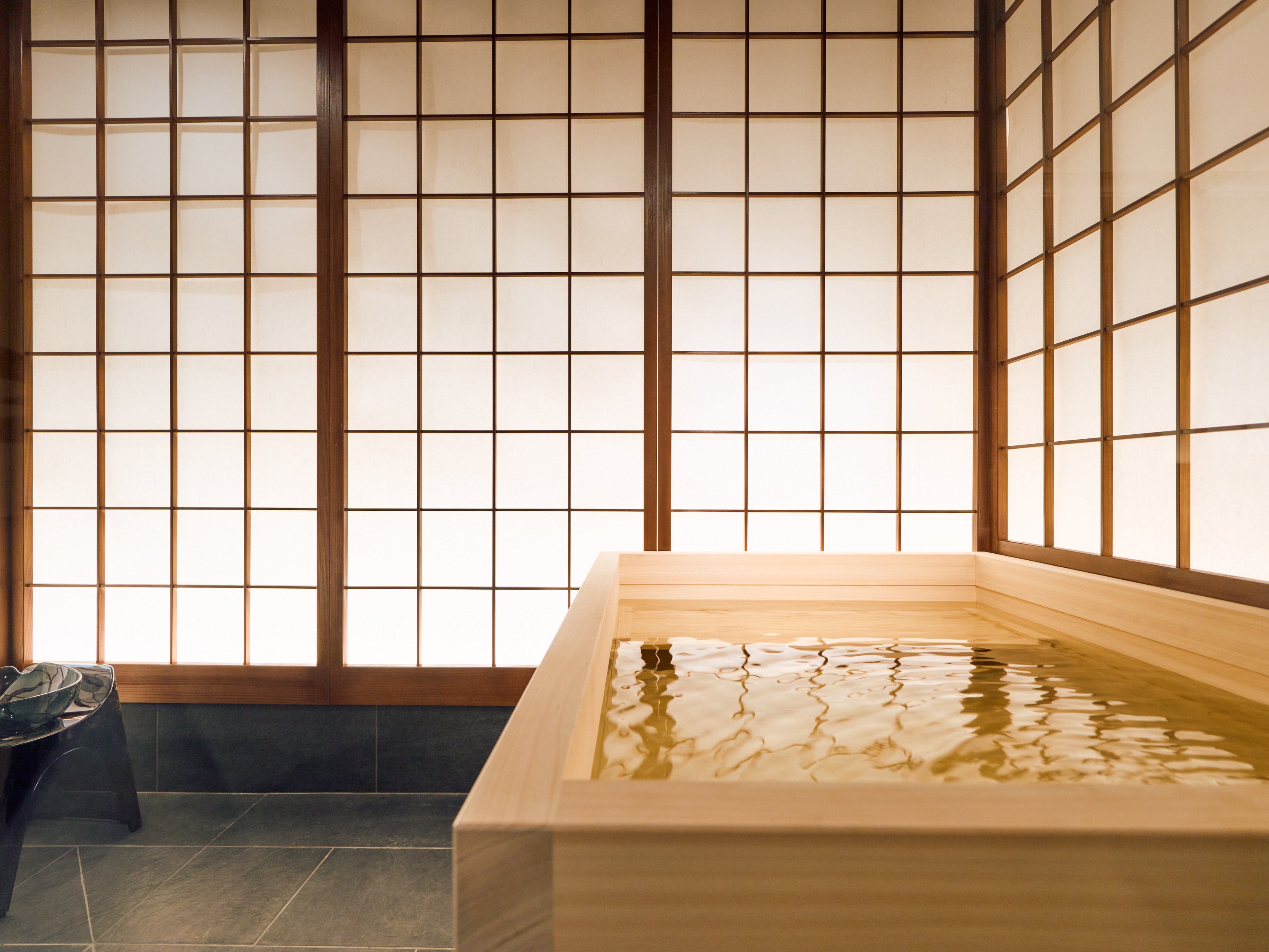 「今昔荘」は、「今」と「昔」を伝えるデザインコンセプト、スタッフ非滞在型にも関わらずゲスト満足を高めるサービス、ホームシアターや露天風呂といった宿泊の夜を楽しめる設備を備えた高級民泊/貸切宿ブランドです。