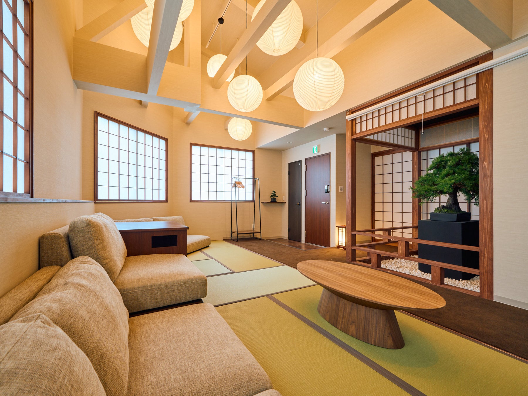 「今昔荘 大阪 天保山 -松柏-」建物2階、客室面積: 88㎡、最大8名、2寝室、4ベッド