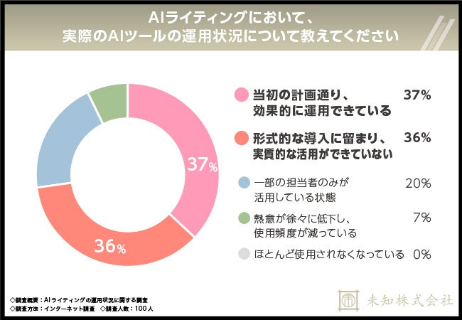 【AIライティングの運用状況に関する調査】3人に1人が『形式的な導入に留まり、実質的な活用ができていない』