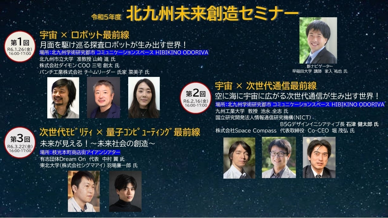 イベント名 | :令和5年度 北九州未来創造セミナー 宇宙×ロボット最前線 月面を駆け巡る探査ロボットが生み出す世界!(全3回) |