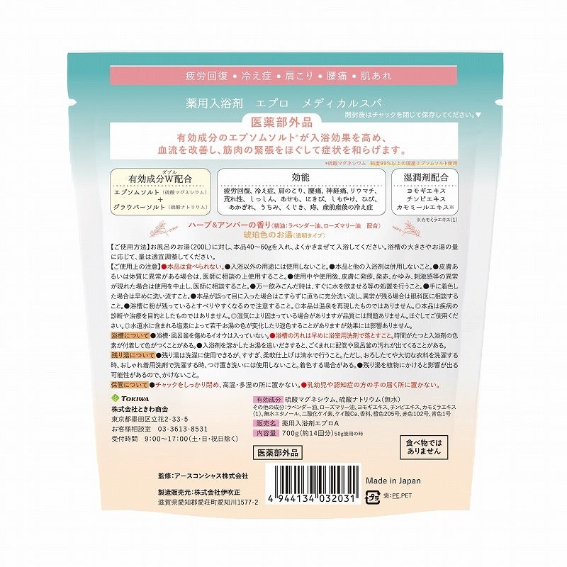 製品名:薬用入浴剤エプロ メディカルスパ<ハーブ&アンバーの香り>