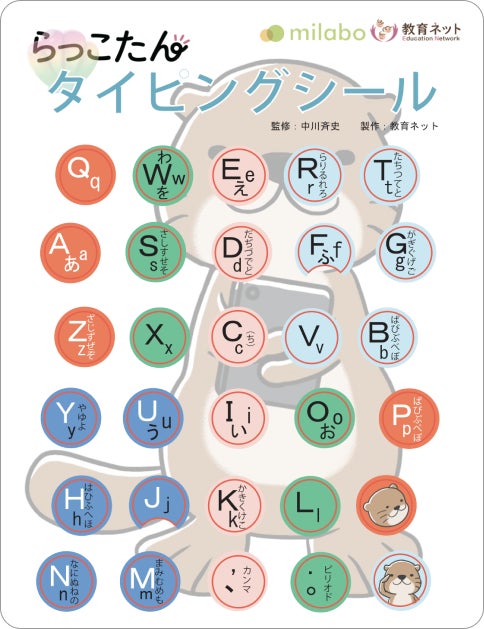 ホームポジションを意識しながら正しい指使いに導く、キーボード⽤「らっこたんタイピングシール」販売開始