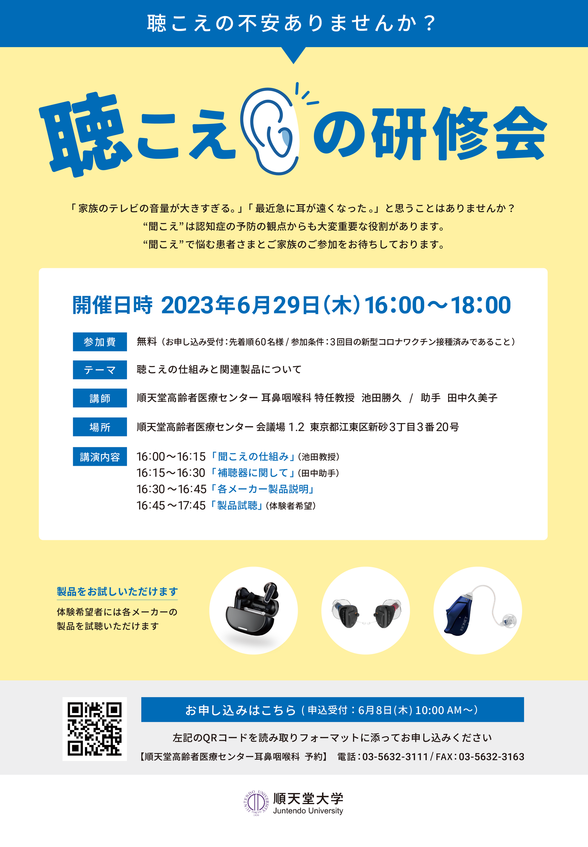 株式会社Olive Unionは、2023年6月29日に順天堂大学高齢者医療センターが主催する「聴こえの研修会」に協同運用パートナーとして参加することが決定しました。