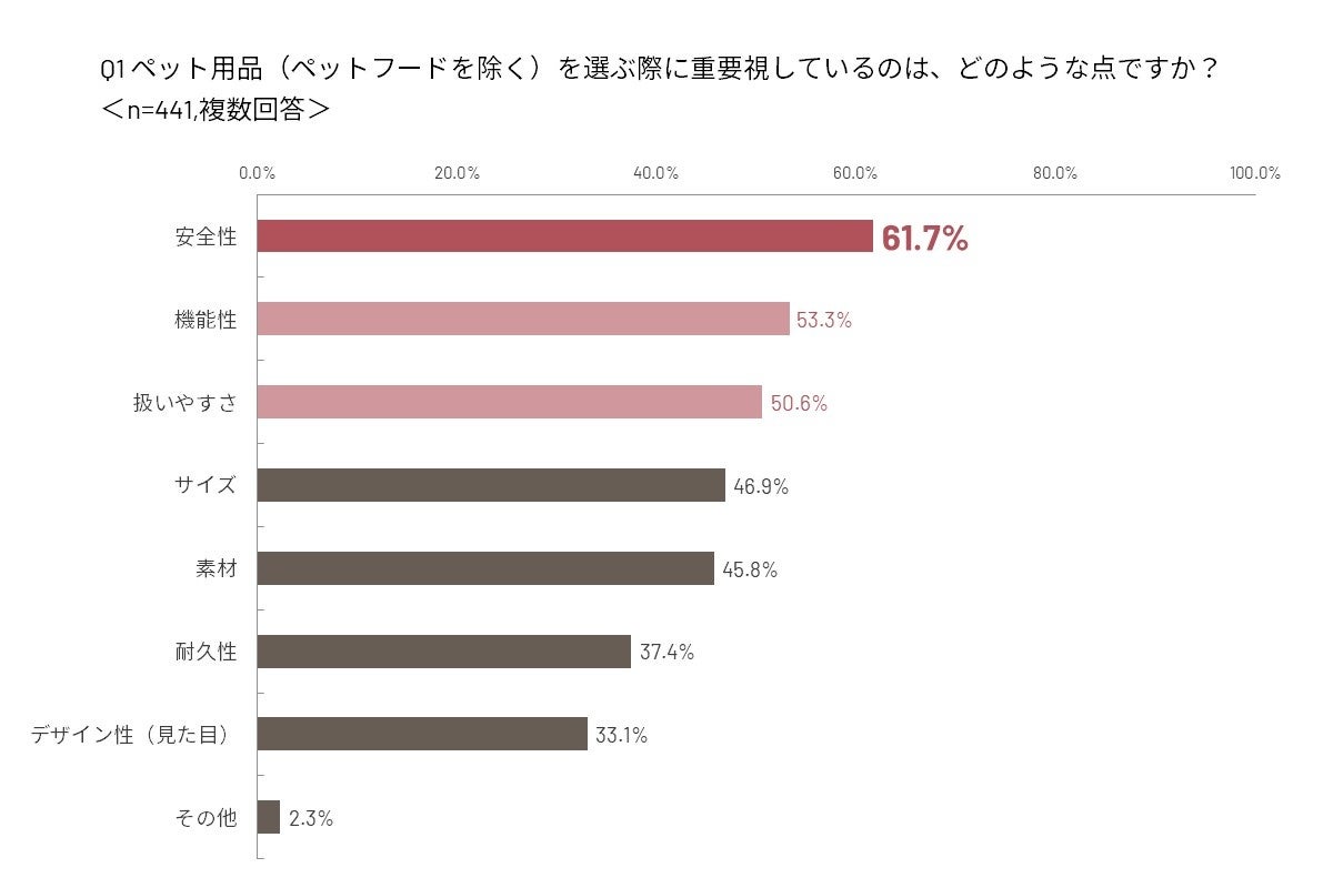 1. ペット用品選択の基準、1位は「安全性」