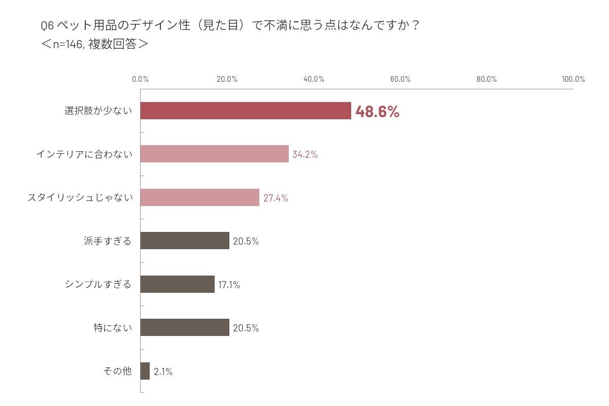 - ペット用品にもデザインの選択肢を望む声が約半数