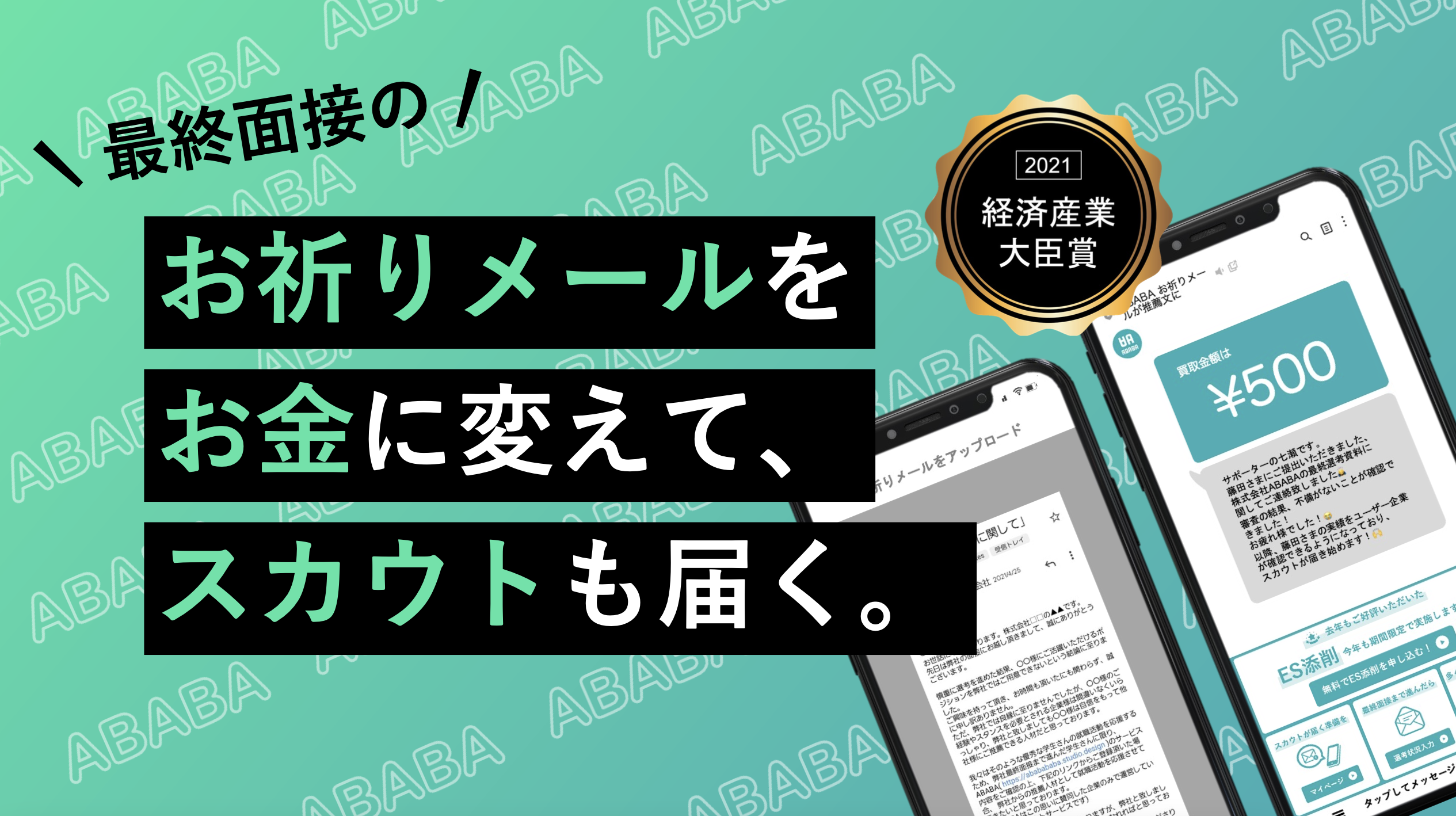 株式会社ABABA(本社:大阪府吹田市、代表取締役社長:久保駿貴)が提供する新卒対象スカウト型サービス「ABABA」が、最終面接のお祈りメールを一律500円で買取するキャンペーンを開始いたします。