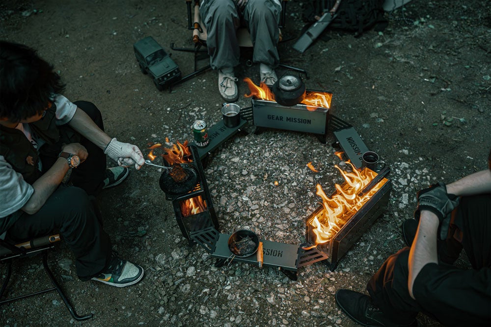 火力を抑えた調理ができるハイゴトク。側面が開放されているため、炎を楽しみながら調理することができます。