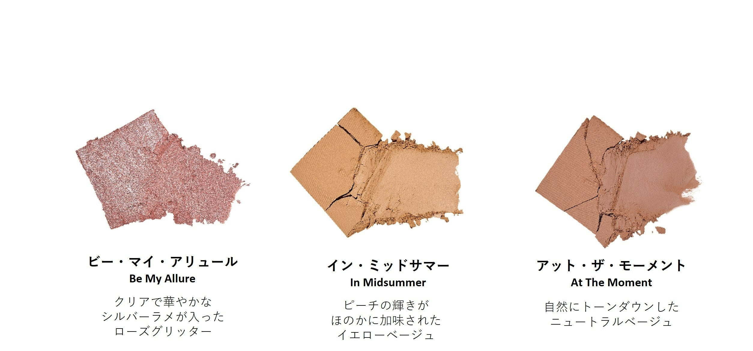 今回、新色が登場するのは、透明感のある陰影が鮮明な印象を演出する「ニューデップスアイシャドウ」。シンプルながら鮮明な存在感のあるカラーが特徴で、ふわっと仕上がるテクスチャーに好評をいただいています。新色は、夏のイメージが名前になった3色をラインナップ。ニューデップスアイシャドウからは初のグリッターも登場します。さらに、塗り重ねるごとにさまざまな色味のニュアンスを楽しむことができることが特徴のネイルポリッシュ「グロウアップネイルカラー」からは、夏限定のカラー3種がラインナップします。ネイルからも初めてのグリッタータイプが登場。