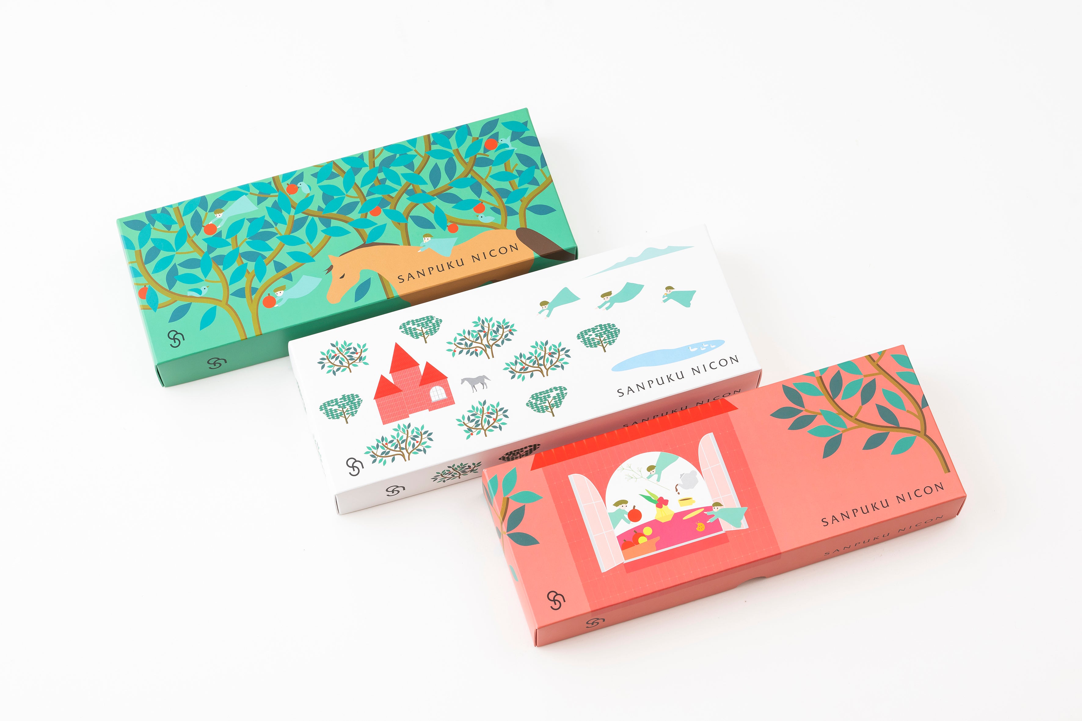 「3人の妖精が運ぶ3つの福」というブランドコンセプトを基に生まれたブランドストーリーから、思わず誰かに贈りたくなるパッケージをデザイン。
