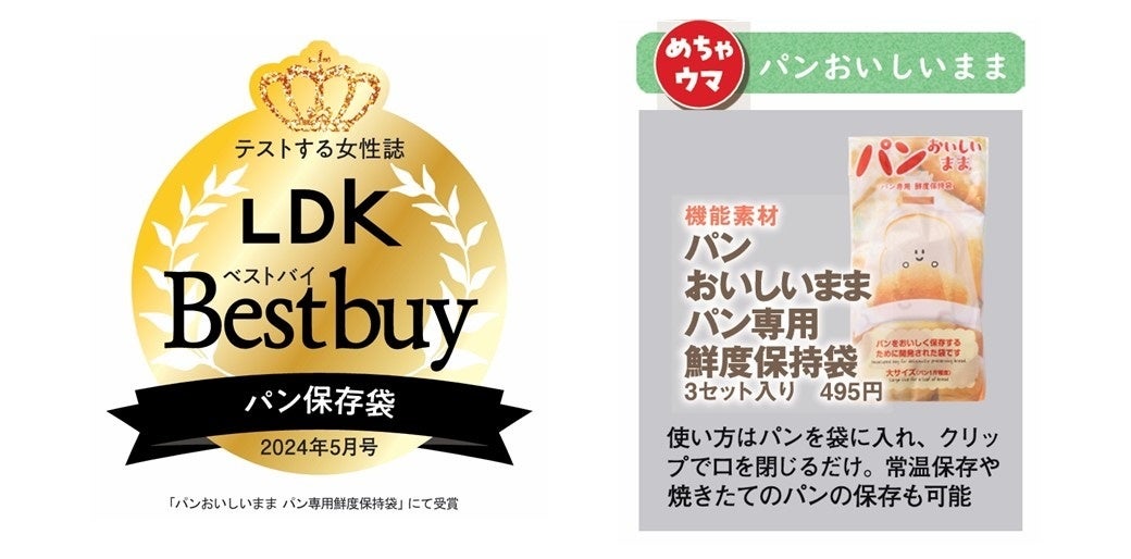 『パンおいしいまま』がテストする女性誌LDKが行った「パン保存袋」調査で最高評価BestBuyを獲得しました。