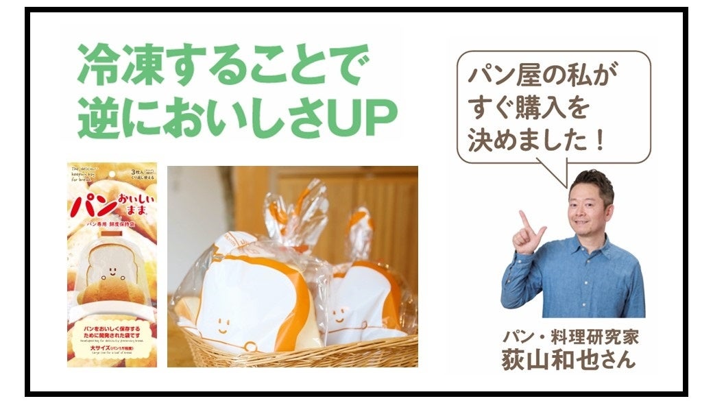 パンを美味しく保存するために開発された「パンおいしいまま」。家庭の冷凍庫内からのニオイ移りを防ぎ、焼き立てパンの香りを守ります。