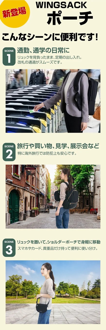 いつものカバンがより便利に!日常をもっと便利に!いつものリュックに 取り付けて、背負ったままでスマホも定期も楽々出し入れ「2WAYポーチ」がわくたんに登場