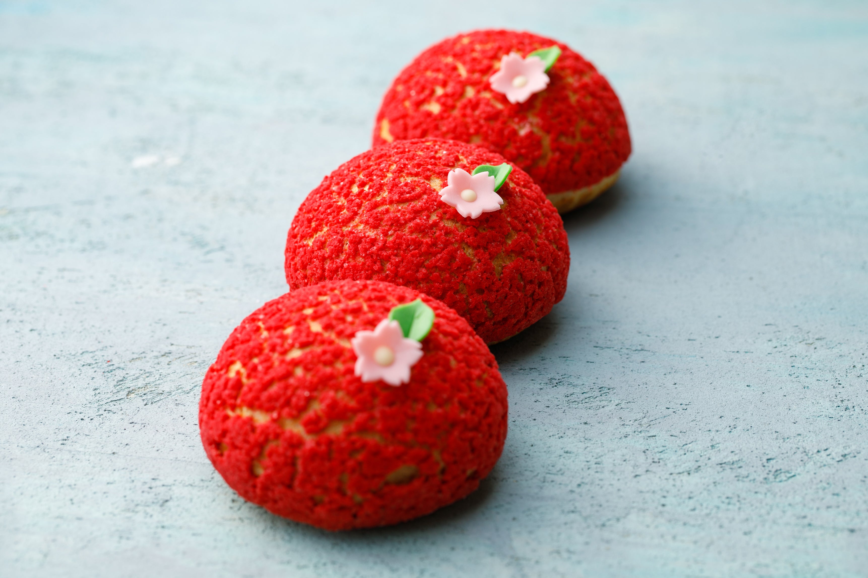 ディプロマットクリームと桜&苺のコンフィをたっぷり詰め込んだ、春限定のシュークリームです。