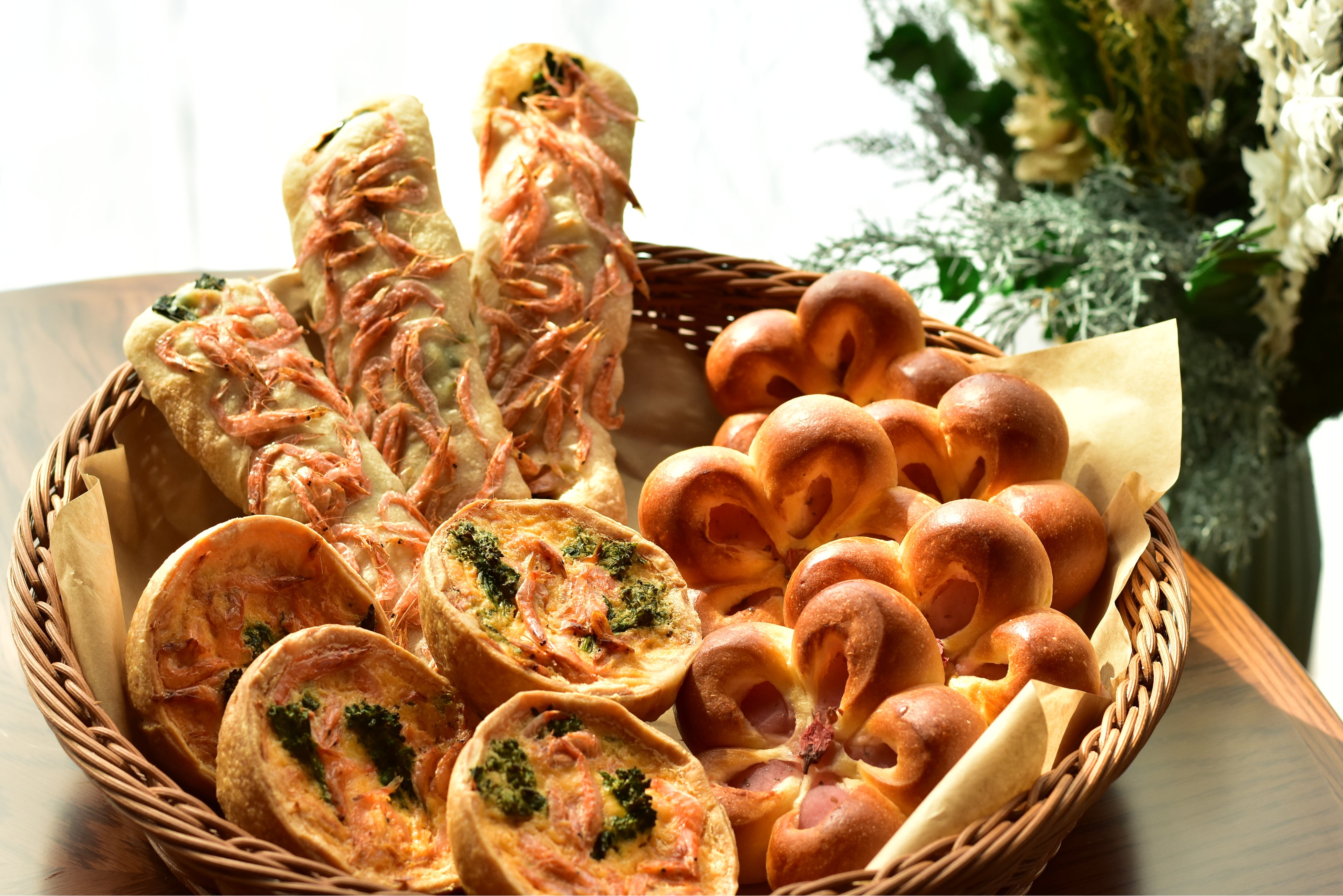 ヘッドベーカー 中村 友彦のシグネチャーブレッドで、48時間ゆっくり熟成・発酵させた、独特な食感のピッツァ生地に季節の食材を包み込んで提供する「ファルチータ」。春限定の「桜ファルチータ」は、桜海老、モッツァレラチーズを使用し、七味唐辛子がアクセントです。