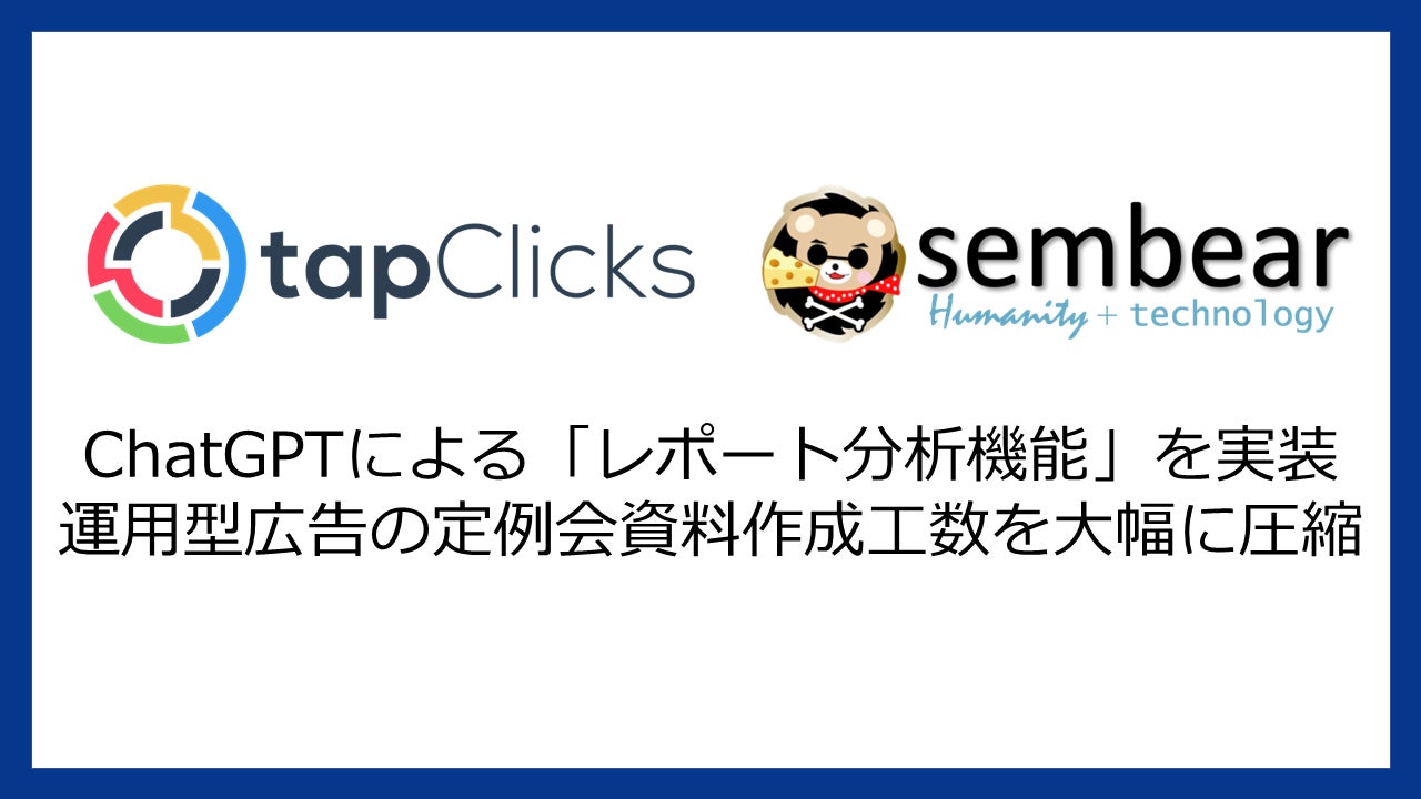 本機能の提供においてもsembear合同会社から日本の顧客向けに本機能は優先して提供されており、すでに複数の広告代理店様にて活用が進んでおります。sembear合同会社は今後もTapClicks社との連携を強化し、米国の先端的なデジタルマーケティングのソリューションをいち早く日本の広告代理店様、広告主様に提供をする所存です。