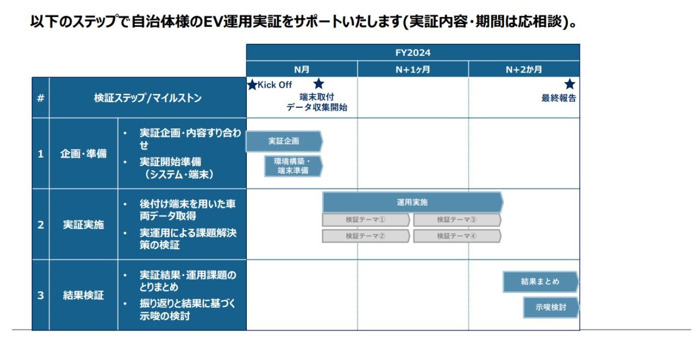 株式会社ゼンリンデータコム(本社:東京都港区、代表取締役社長:清水 辰彦、以下:ゼンリンデータコム)と、株式会社AMANE(本社:東京都港区、代表取締役:井上 佳三、以下:AMANE)は、電気自動車(EV)およびプラグインハイブリッド車(PHEV)のデータ管理システムe-mobilogを活用した自治体向けの運用実証支援パッケージの提供を開始しました。本パッケージは自治体が抱える “EV車両を導入したが具体的にどのように活用すれば良いかが分からない” 等の課題に対して、e-mobilogを活用したクイックな実証を通じ、EV運用における車両データ活用の可能性を迅速に検証することを目的としてご活用いただけます。